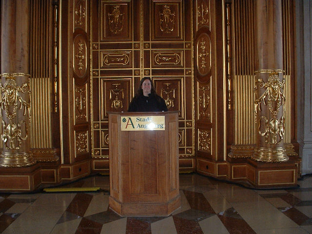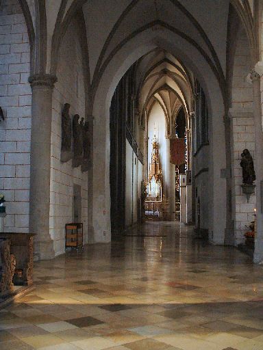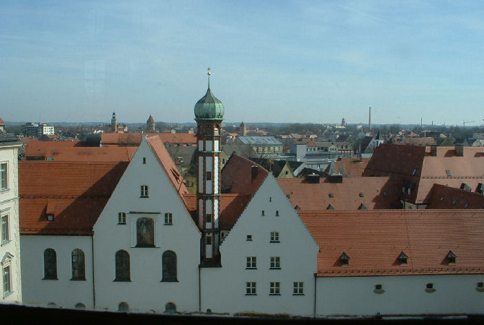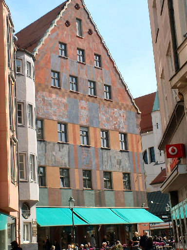 The town of Augsburg is MAYBE the size of Ann Arbor. Augsburg used to be surrounded by a wall and a moat. Only a part of the wall and moat still exist. There are many bakeries (I enjoyed a lot of cheese cake), chocolate stores, clothing stores, open markets and places to eat with outside eating areas in the squares. The cobble stone roads are VERY old.