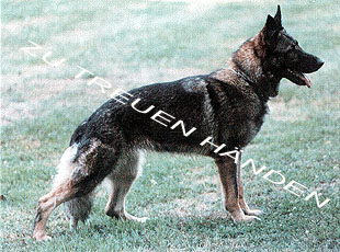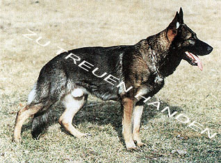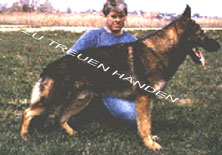 February 1985-December 1997 Sire: 'V' Rolf von den Eschbacher Klippen SchH3 FH KKL1a son of Grief z. Lahntal with lines back to VA Marko v. Cellerland, VA Quanto Wienerau, VA Frei v.d. Gugge, Fello Lierberg. Dam: Sabrina v. Lerchental SchH1 OFA good by Spitzen "V" Rocco v. Busecker Schloß with lines back to VA Bernd v. Lierberg, VA Alf vom Convent, Jupp v.d Murrenhütte. Tara is linebred on Fello-Bernd Lierberg (5-4) |