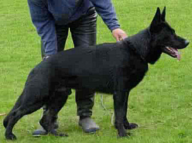 Sire Over medium size, medium strong, normal topline, croup should be very slightly longer. Good angulations, normal chest proportions, straight front, straight footfalls. Good gaits with strong rear propulsion, front reach should be somewhat more free. Sure temperament, TSB pronounced, outs. Linebred E - Breed vom Körbelbach (Evi - Ester) 5-5 |