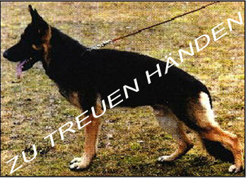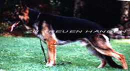 Dam 'SG'Citty vom Haus Ming 12/03/93 NHSB 1915903 SchH.3, VH3, VZH Kkl.2 hd-tc ZW:88 Linebreeding: Mink vom Haus Wittfeld (2-2) Ira vom Jägermeister (2-4) Greif zum Lahntal (4-4,5) Enno vom Antrefftal (4-5) |