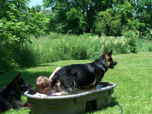 With my 3.5 yr old nephew "sharing" the dog pool, June 2010
